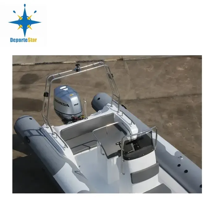 Denna 28 fots sportstyva uppblåsbara båt vars längd är 6,8 M, kan lastas i 4 st i en 45HQ container. Om du vill installera maximal hk-motor, vänligen kontakta vår fabrik vilket är mycket viktigt för båten.